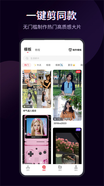「卡点模板」添加视频或图片,就能生成热门卡点视频