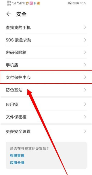 打开“安全”之后,在该界面找到“支付保护中心”,如图