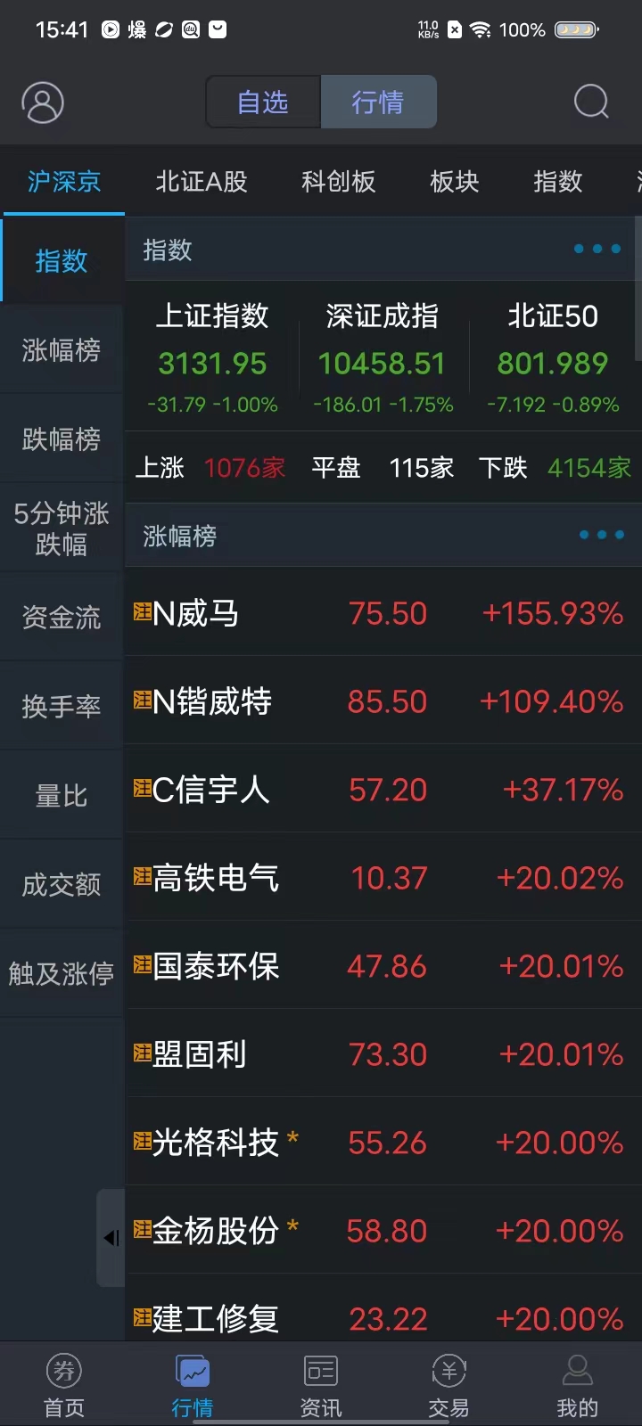查看上证A股、深证A股等市场上根据涨幅、振幅、涨速、量比等各项指标排名的证券