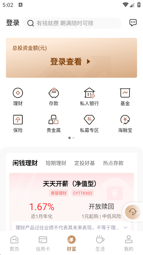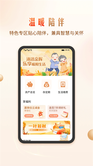【我的】简约的设计风格、暖心的颜色搭配、一目了然的功能布局,提高交易顺畅性。新增服务指南、业务办理楼层,陪伴您的金融之旅。