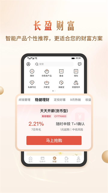 【信用卡】信用卡功能上新,新增“积分商城”,提供丰富多彩的商超购物、交通出行、特色美食、缴费立减等各类福利活动,让您惊喜不断、用卡不愁。