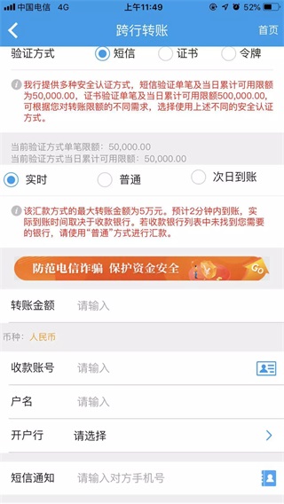 采用数据加密、动态短信验证、交易限额控制、OTP令牌口令校验等多种安全手段,确保您的账户资金安全。