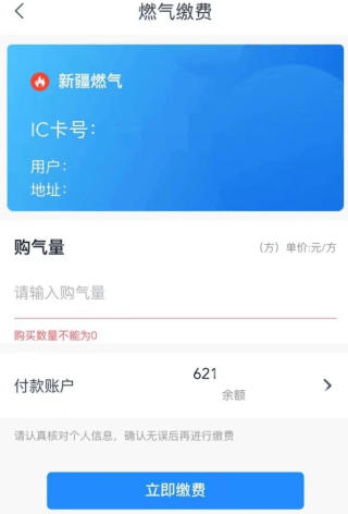 根据操作界面提示,设备认证成功后,自动转入购气界面,手动输入购气量后,点击立即缴费,即可完成购气。