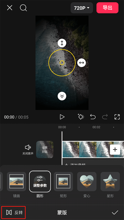注:部分版本需先添加画中画素材(第二段视频)后,蒙版功能才会显示。