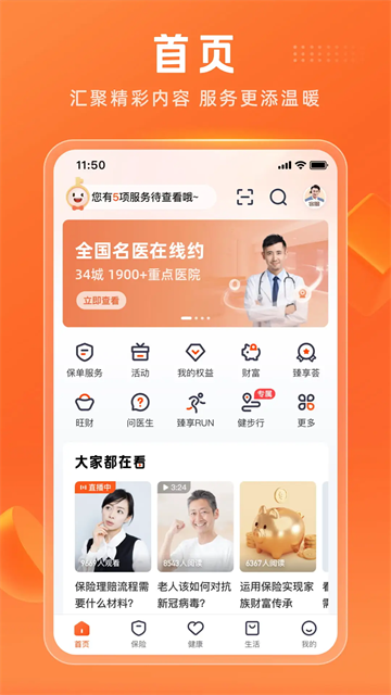 保险产品随时选购,服务涵盖全面到位,资金账户管理更方便;更有“旺财” 账户帮您财富升值,为您的财富保驾护航。