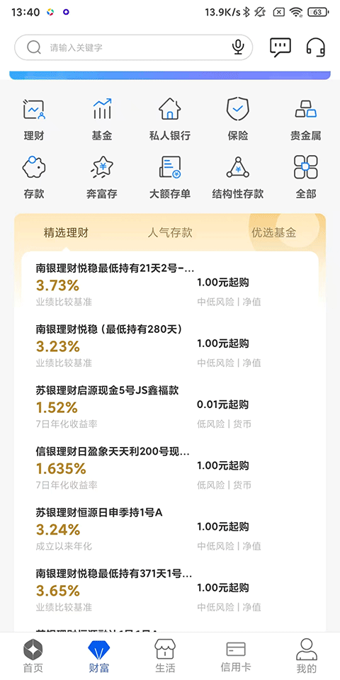 2、财富:理财、基金、私人银行、保险、贵金属,理财产品尽在此处;