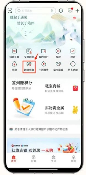 1.登录您的泸州银行手机银行APP首页点击“跨境金融”