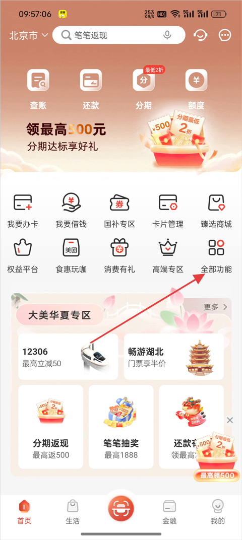 2、在首页点击【全部功能】;
