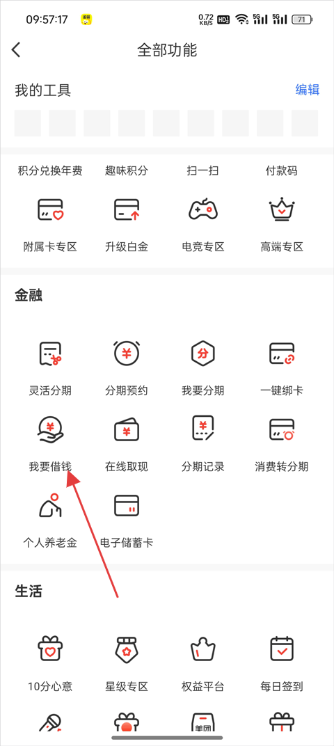3、找到并点击【我要借钱】,即可进入相关页面。