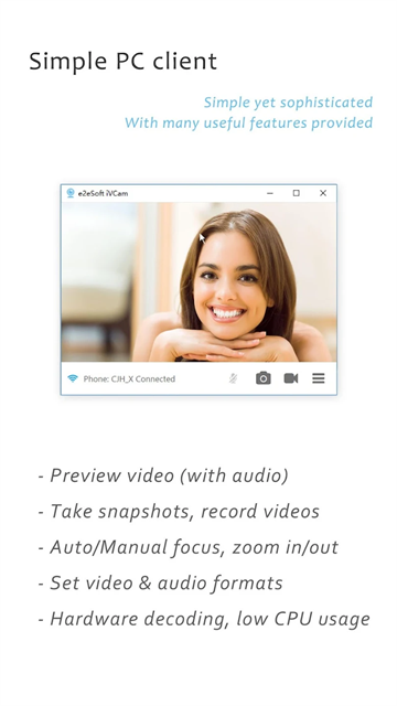 iVCam 可以通过 USB 连接将视频从手机传输到电脑。