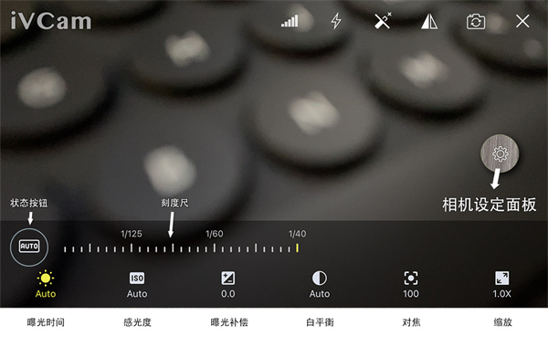 点击视频上的“设置”按钮会弹出“相机设定”面板,在面板上下滑可以隐藏它: