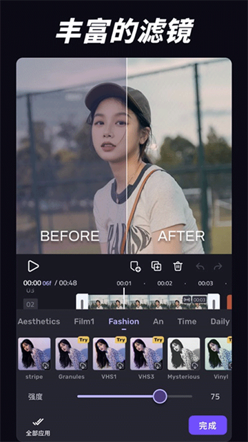 作为独特的核心功能,Fx Plugin 是 VivaCut 为各种滤镜和效果设计的强大插件架构。对App已有的功能进行补充和扩展,可以最大限度的实现视频特效。目前插件中心已经支持了几十个不同用途的插件,还在不断更新中。