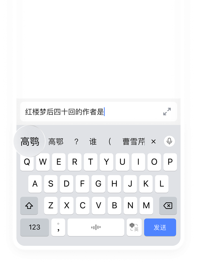 输入「1+1=」,亦或者输入问题「西游记的作者是谁」,输入法会直接在候选栏直接显示结果。