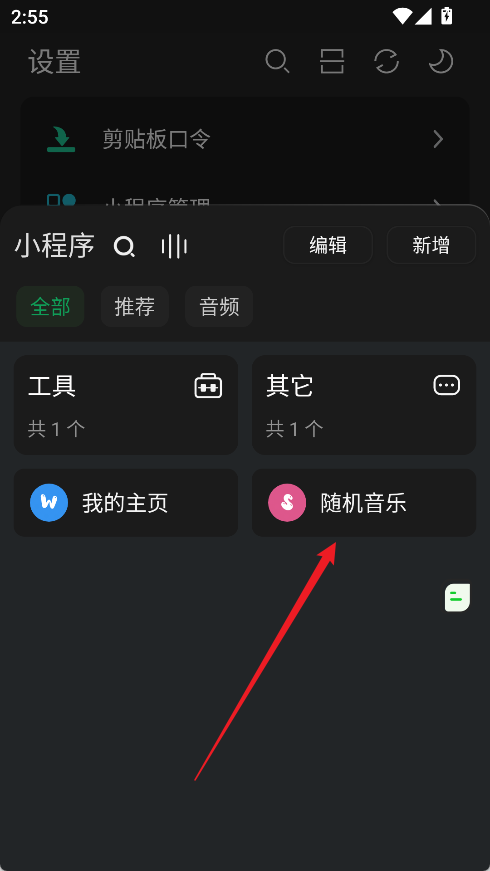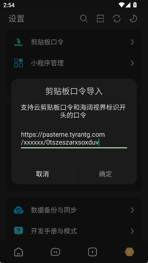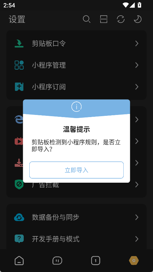 如果是口令或者链接,和单个规则一样,复制口令打开软件首页即可;如果是文件,到设置->我的小程序管理->左上角菜单从本地导入。