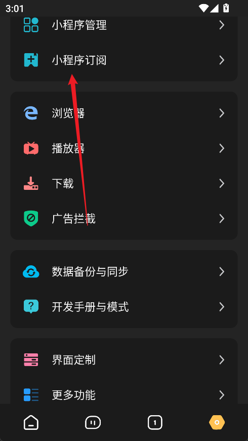 1、在设置页面选择上方的小程序订阅