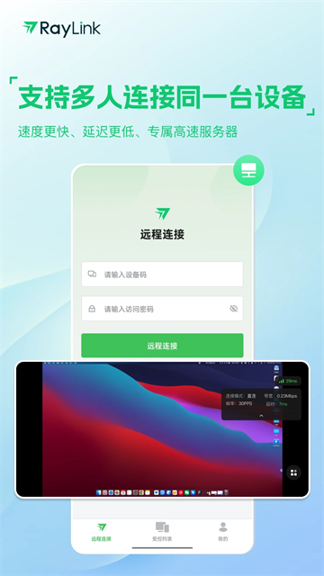 v8.14.1RayLink手机版是专为视觉行业打造一款远程控制软件,支持跨平台控制,依托瑞云科技多年对图形图像行业的服务经验以及实时云渲染、镭速传输协议等多种技术的沉淀,适用于各类远程制作、远程办公、远程游戏、远程协助场景,其支持高达120FPS的帧率,远超一般远程控制软件的标准,确保在远程操作过程中获得极低延迟和极为流畅的操作感受,尤其对于远程游戏场景,能够提供极致的游戏体验。通过RayLink远程控制软件能够轻松满足业内人士远程创作、娱乐、办公等诉求,为用户提供超清、稳定、安全、便捷的远程控制体验。