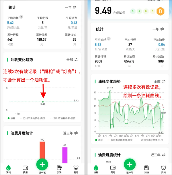 小熊油耗App几次记录才能算出油耗/电耗/能耗?