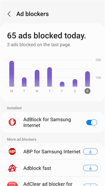 Android 版三星浏览器允许第三方应用程序提供用于内容拦截器的筛选条件,从而保证浏览更安全、更流畅。