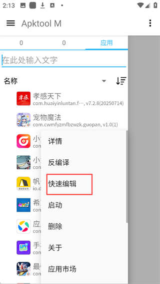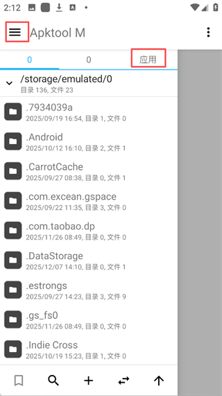 1、打开Apktool M汉化版,点击右上角的图标【三】在点击【应用】板块