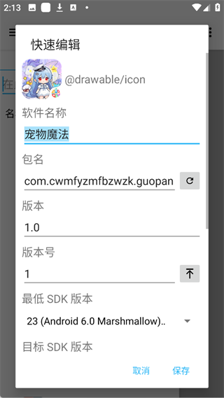 无需重新编译即可快速编辑应用名称、包名(克隆应用时)、图标等属性。