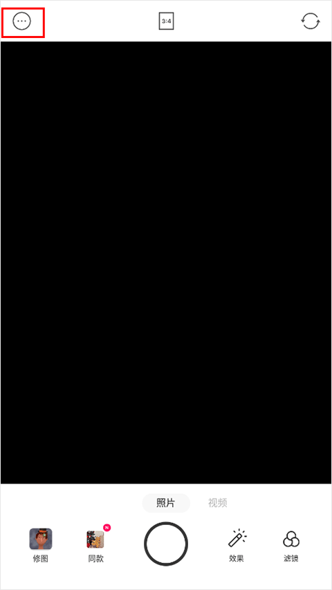 1、首先打开foodie相机,进入拍摄界面后,点击左上角的三个【…】图标,见下图;
