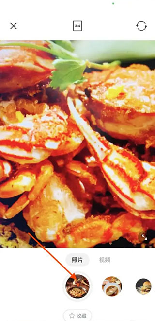 打开【美食】标签栏,选择拍照效果,点击【拍摄】。