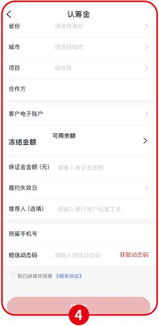 4、选择对应的省份、城市、项目,保证金金额为冻资金额。