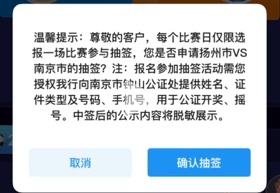 3、最后点击确认抽签,若有幸抽取到将会以短信方式通知您。