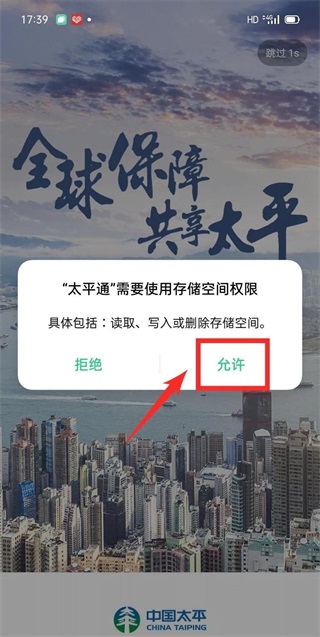 3、存储空间权限,点击允许