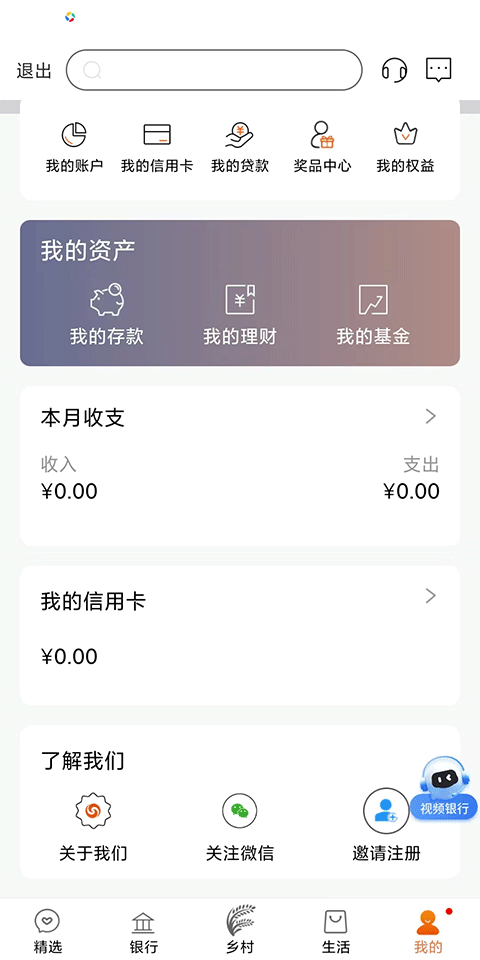 5、我的:我的账户、信用卡、贷款、权益、本月收支...