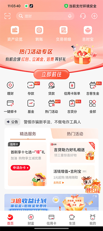 v6.3.2吉林银行App是吉林银行官方推出的移动金融服务平台,集账户管理、转账汇款、理财申购、信用卡服务、缴费生活等功能于一体。界面清晰,操作流畅,转账高效、安全措施齐全,支持人脸识别、指纹认证等多重验证。新版本的吉林银行App特别融合了本地化便民服务,如水电缴费、公积金查询等,让日常生活更便利,配套“吉林惠生活”专区和智能客服功能,是本地用户值得信赖的金融管家。