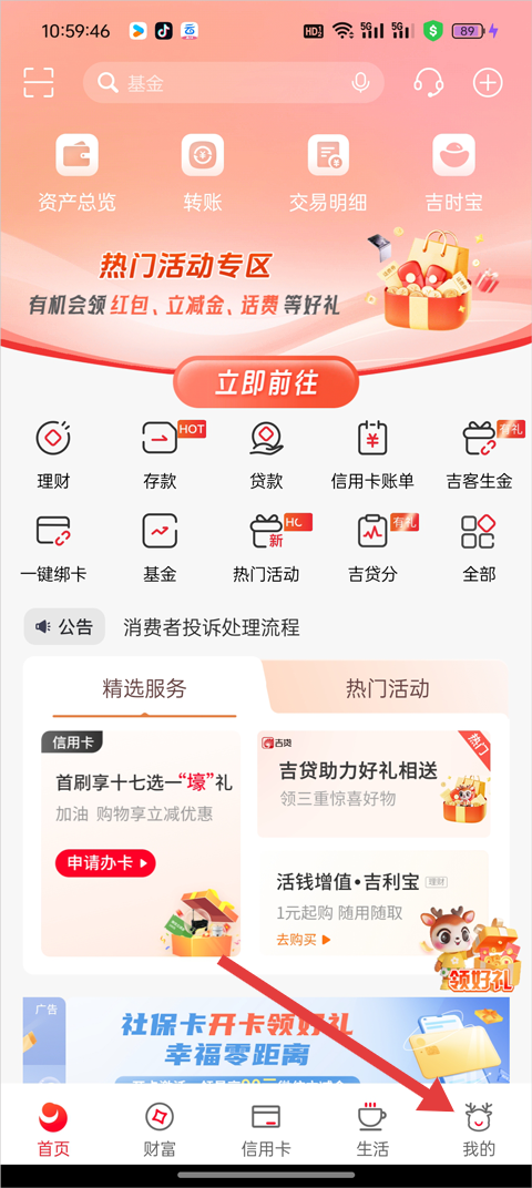 3、理财服务。包含活期、定期储蓄、增利账户、理财、基金等服务。