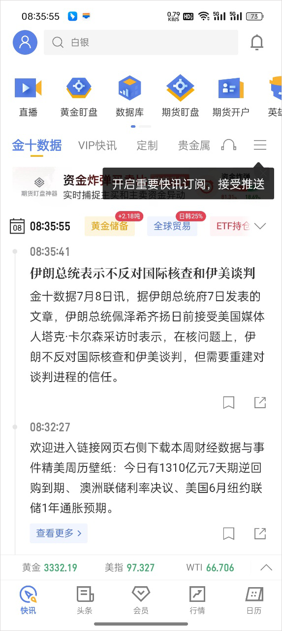 v6.33.1金十数据App是一款面向投资者的专业财经资讯软件,其聚焦全球金融市场动态,提供7×24小时实时快讯、行情报价、市场分析和交易策略,内容涵盖黄金、外汇、期货、原油、股市等多个板块,适合各类交易者。金十数据手机版优势在于“秒级快讯”“经济日历”“全球市场情绪工具”等功能模块,可提升用户的投资判断力和交易时效,适合频繁交易与短线操作人群使用。