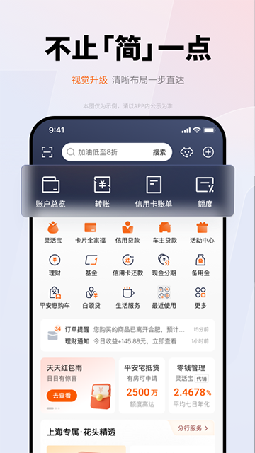 v7.10.0平安口袋银行App是平安银行推出的一款综合性移动金融服务平台,集金融业务与生活服务于一体。包含理财、基金、存款、黄金、贷款、贴心权益等各种金融服务,可以帮助用户轻松查询和管理名下所有的平安借记卡。现阶段,平安口袋银行App已覆盖信用类和抵押类多款产品且线上化流程高效便捷,用户可充分享受快速的资金服务。