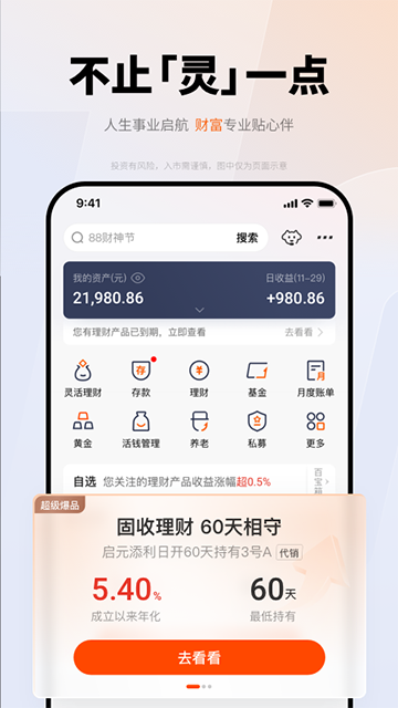 覆盖理财、基金、存款、黄金、贷款等产品,打造一站式金融服务。