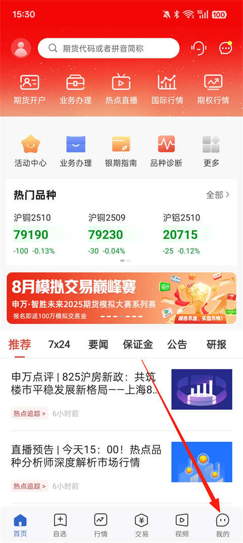 1、打开申万期货App,登录之后,点击【我的】