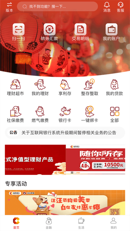 2.便民生活:生活缴费、公积金查询、电子健康卡、一元观影等功能,全力提升客户便捷生活服务体验。