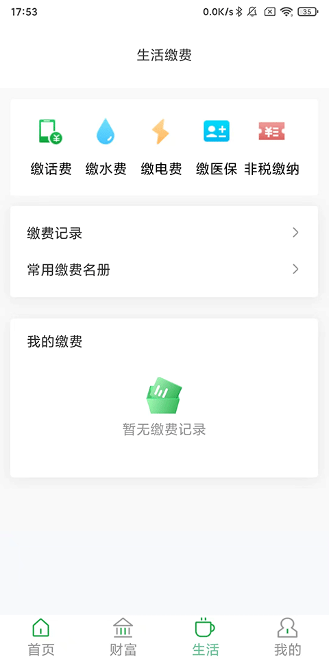 2、生活缴费:充值缴费可缴纳水电燃气费、电视费、手机话费、交通罚款及平台入驻商户上传的自定义缴费账单;