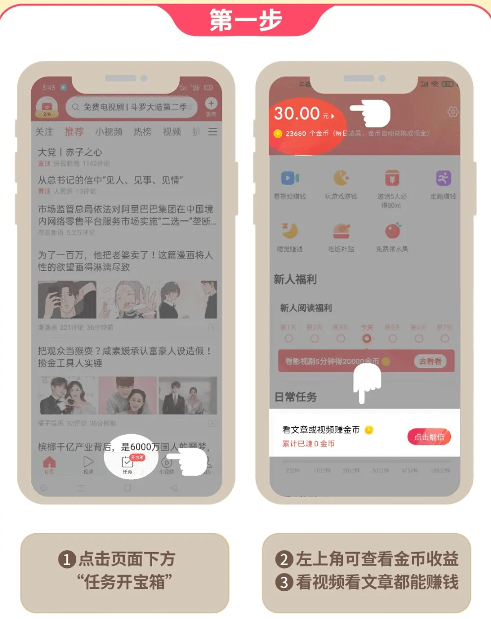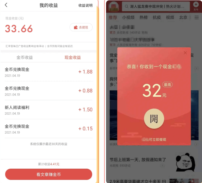 v14.9.0.0今日头条极速版是一款可以赚钱的新闻阅读应用。今日头条极速版目前拥有推荐引擎、搜索引擎、关注订阅和内容运营等多种分发方式,囊括图文、视频、问答、微头条、专栏、小说、直播、音频和小程序等多种内容体裁,并涵盖科技、体育、健康、美食、教育、三农、国风等超过100个内容领域。
