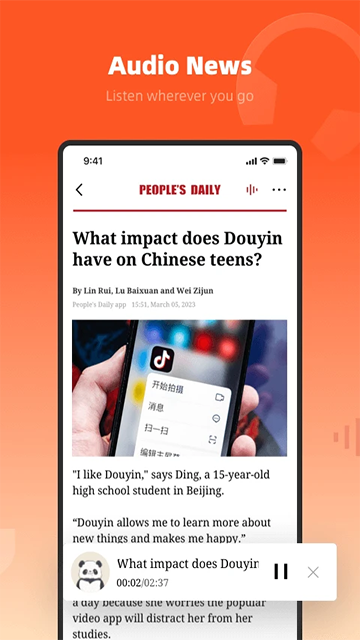 人民日报英文版(People's Daily)是人民日报官方推出的英文版人民日报App客户端,主要服务海外华人、外侨及国际友人。人民日报英文版客户端秉承“联接中外、沟通世界”的宗旨,致力于讲好中国故事,加强国际传播,为希望深入了解当代中国的用户提供可靠、原创的政策解读与深度分析。凭借人民日报社遍布全球的记者团队,人民日报英文版不仅聚焦中国发展,还提供国际热点新闻视频与现场直播,打造一站式全球资讯平台,帮助用户精准掌握最新动态,从而成为连接中国与世界的重要桥梁。