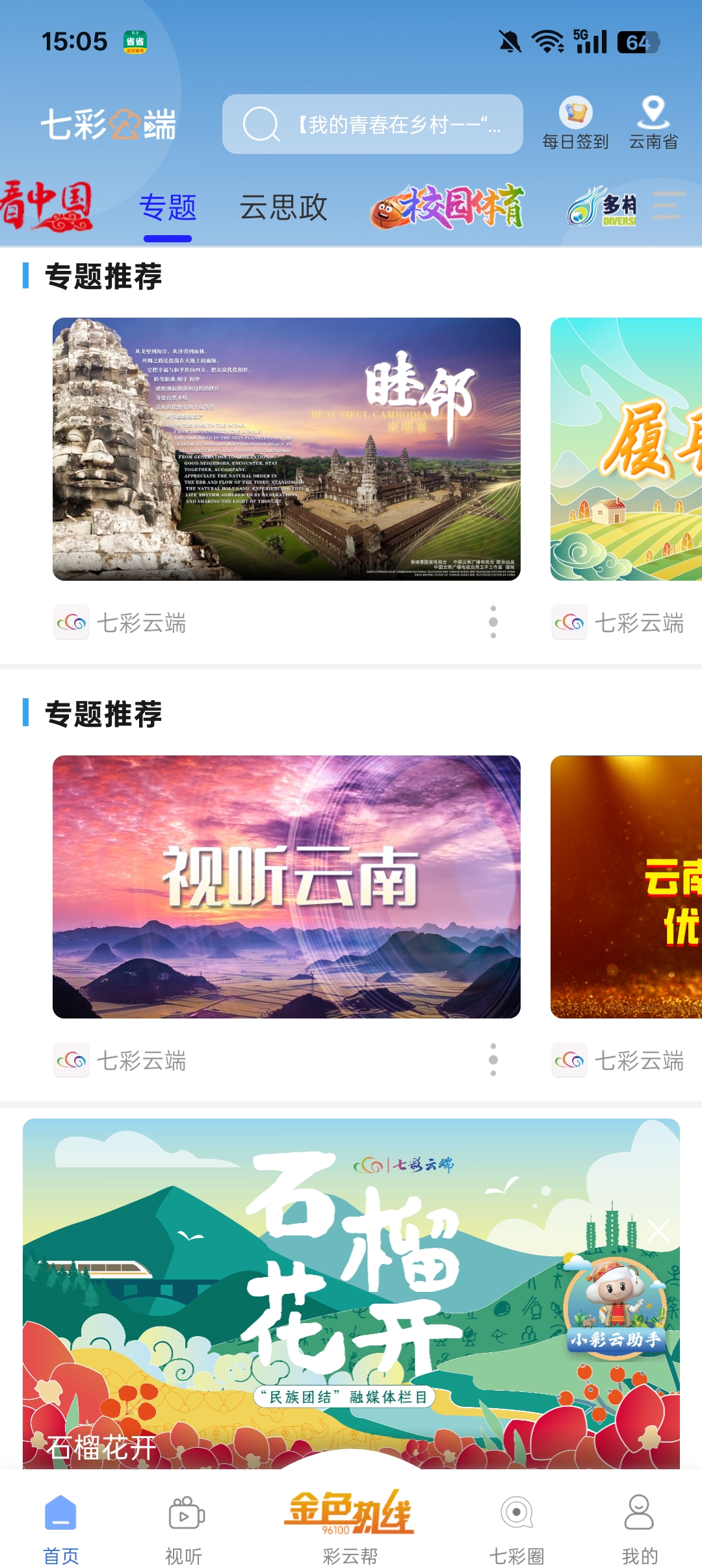 七彩云端是由云南广播电视台开发的一款面向云南地区的融媒体服务平台,集新闻资讯、电视直播、民生服务、互动社区等功能于一体,旨在为用户提供本地化的权威信息和便捷的生活服务!软件聚合云南省、州、县三级媒体资源,提供最新、最权威的本地新闻。这里还有各种突发新闻、民生热点、政策解读等资讯,并采用图文、视频、直播等多种形式呈现,感兴趣的朋友欢迎下载使用!