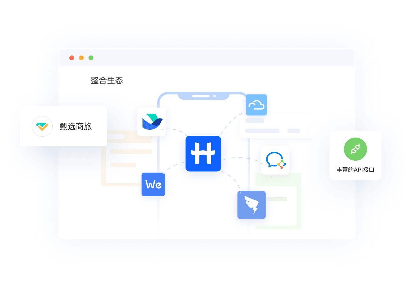 ●汇联易利用标准API体系,与企业内部的ERP、CRM以及HR等多种管理系统拉通,并确保无忧升级;
