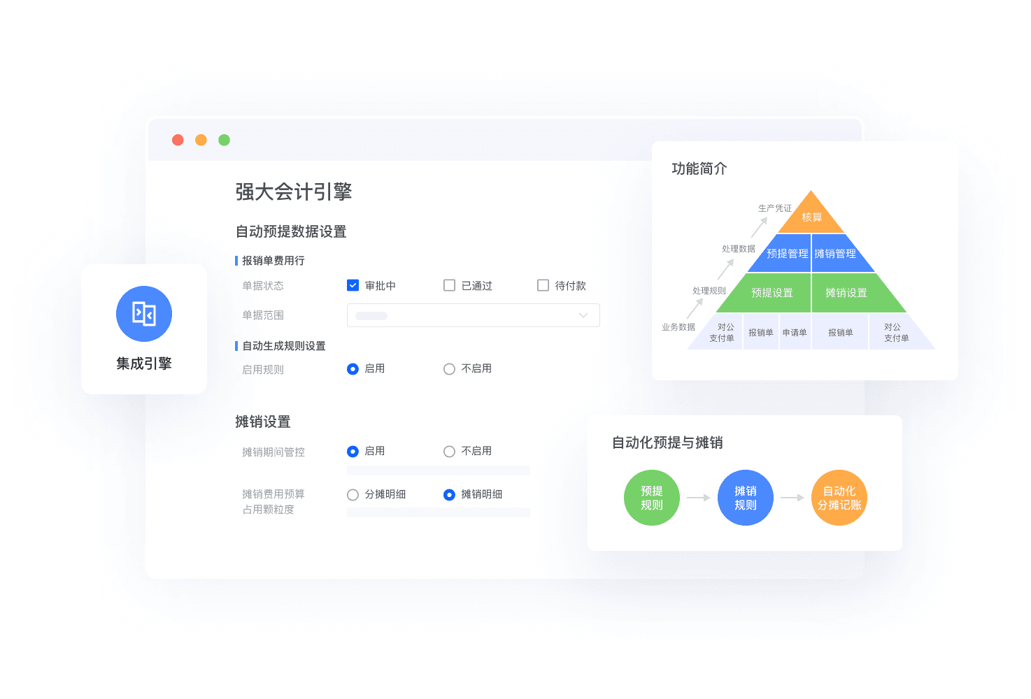 ●汇联易具备强大的核算引擎,支持客户设置摊销规则,自动完成费用的分摊及摊销记账。