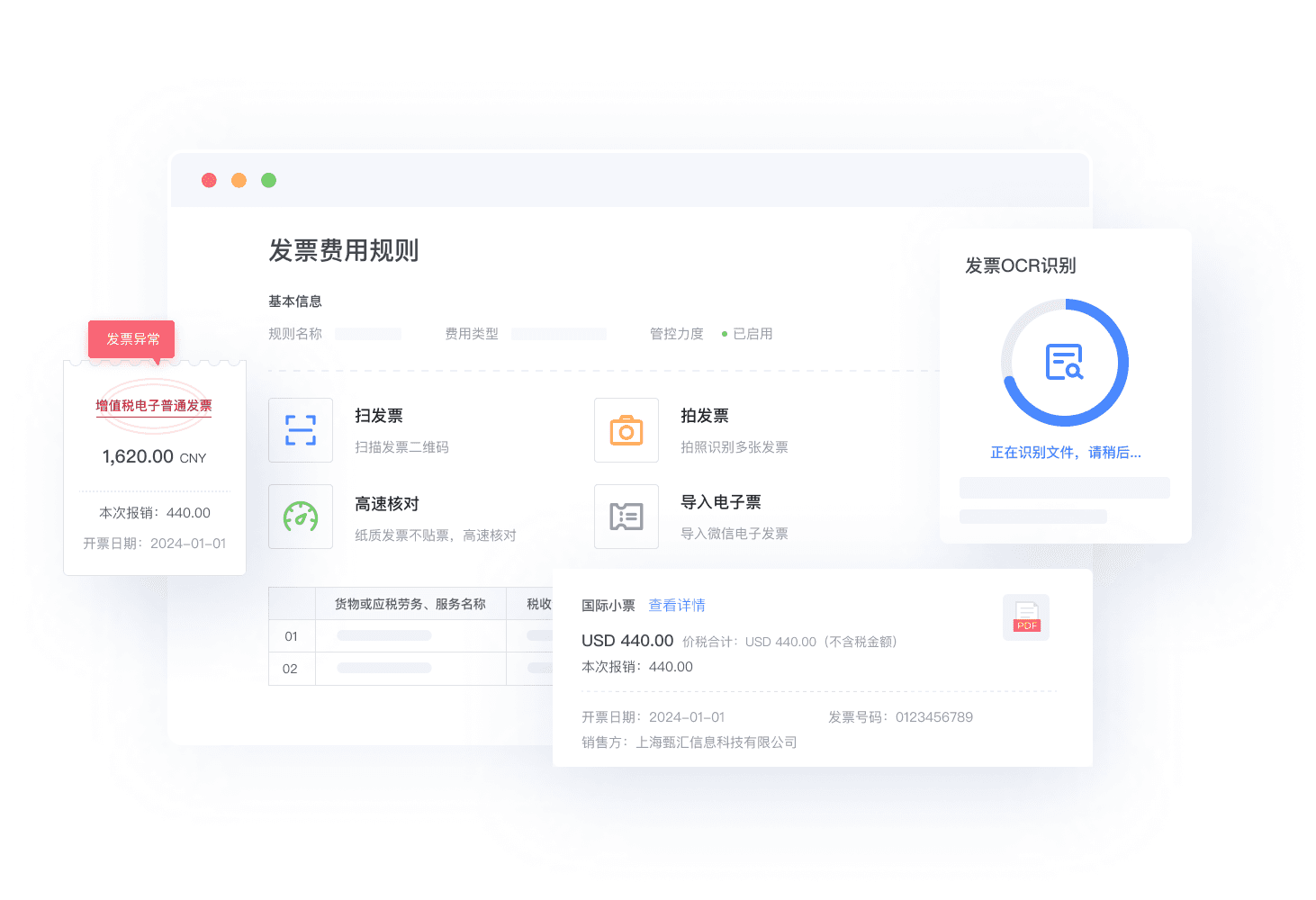 ●汇联易利用移动端以及税局接口,实现了发票的全渠道收集,包括纸质发票OCR识别以及各通道数电发票、电子发票收集;