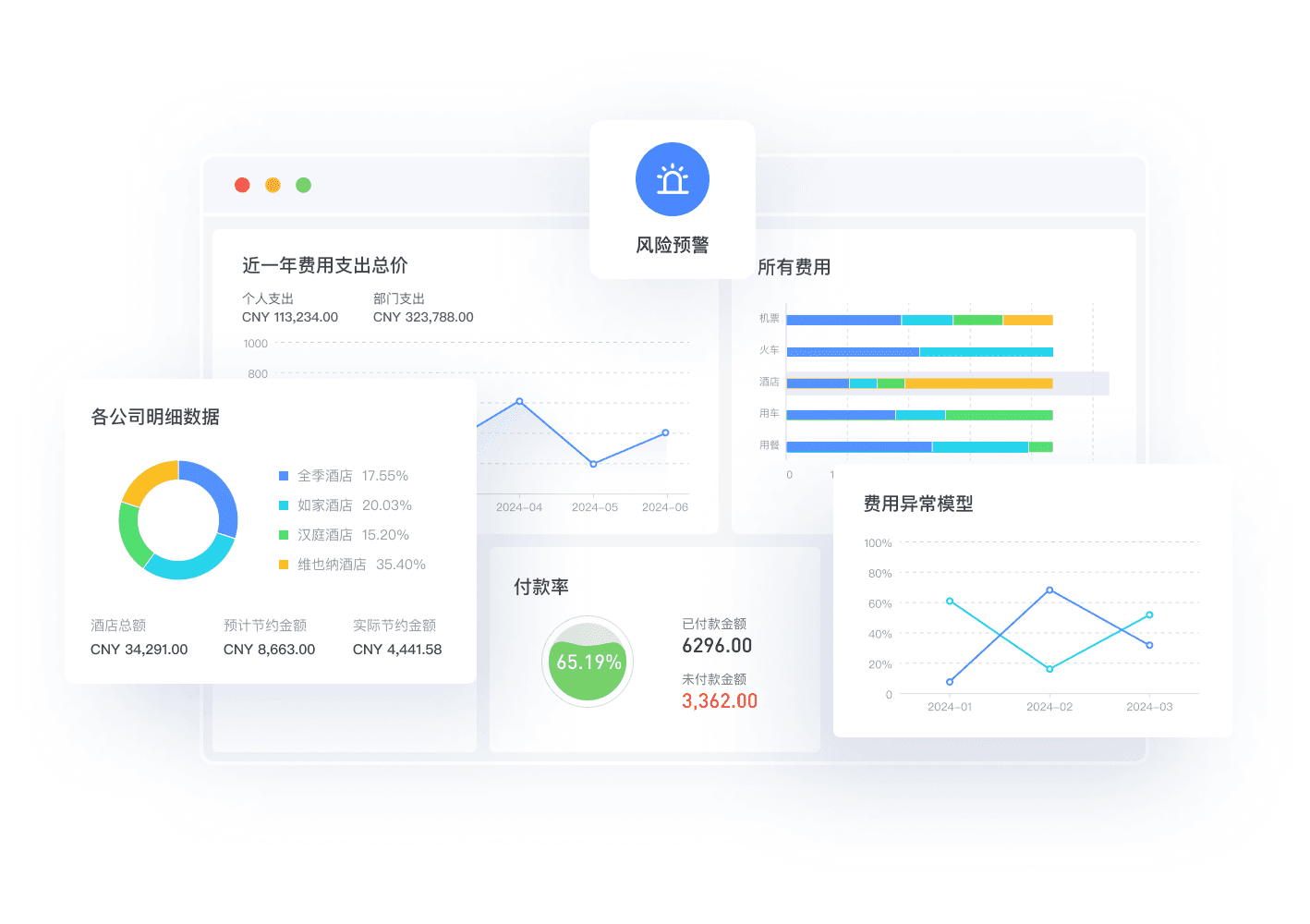 可以通过明细事项、费用标准等办法,完美植入预算编制,实时超标预警,在事前、事中及事后,合理控制每项费用支出的合理性及合规性。