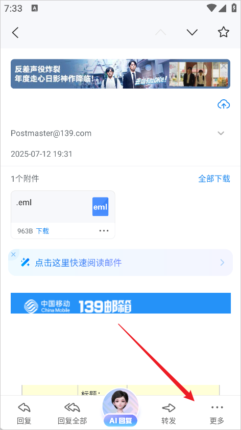 v11.2.1139邮箱App是一款由中国移动官方推出的多功能邮箱管理工具,融合了邮箱、云盘、智能助手与移动运营商服务于一体,支持手机、PC、短信多端收发邮件,全面满足现代办公与个人数据管理需求。其“手机号即邮箱号”的创新设计,降低了使用门槛,且具有邮件+短信双重提醒机制,确保不错过任何重要信息。作为一款智能办公应用,139邮箱支持文件云备份、微信资料存储、语音转写、资料共享群等功能,更接入DeepSeek 671B AI模型,提供智能写作、文档润色、智能问答等辅助服务,帮助用户提升办公效率,它还整合了移动话费账单服务,让通信与财务管理合二为一,构建出一个真正意义上的“智慧信息管理中枢”。