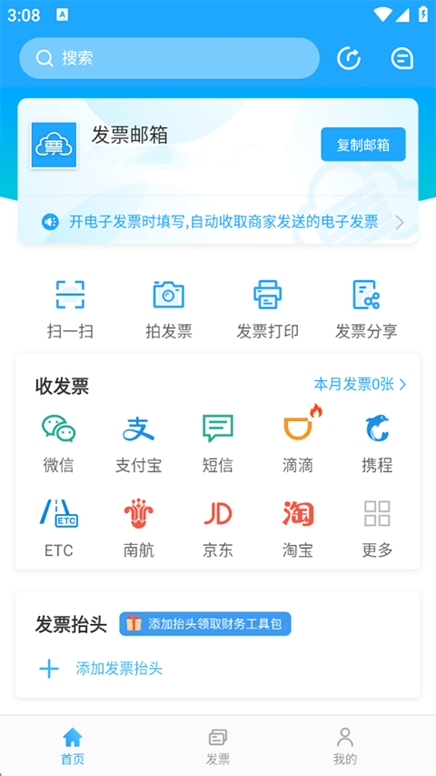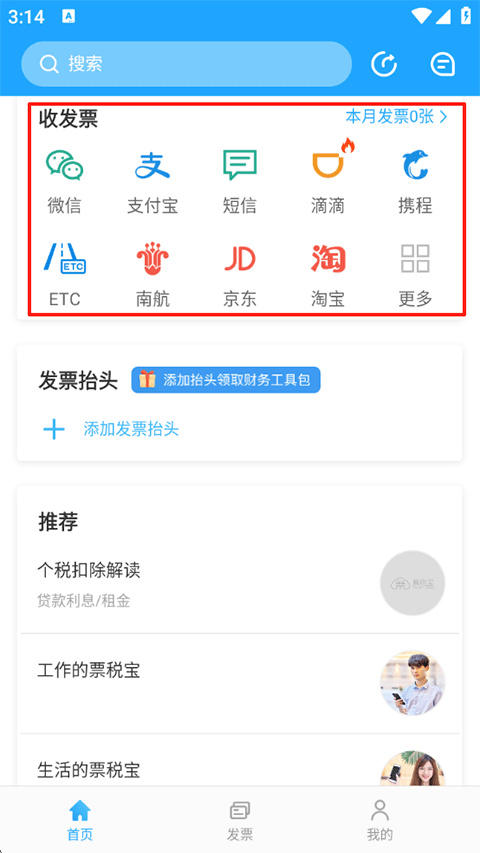 v1.11.4票税宝是一款为个人提供发票管理、个税管理的工具应用,能够帮助用户管理电子发票和办理个税事务,在餐饮、出行、购物等消费方面进行开票服务,记录所有的发票,帮助用户进行报销服务,不用担心票据丢失。票税宝APP可以轻松收集所有类型的电子发票并进行集中管理,为你的报销、用票提供极大方便。