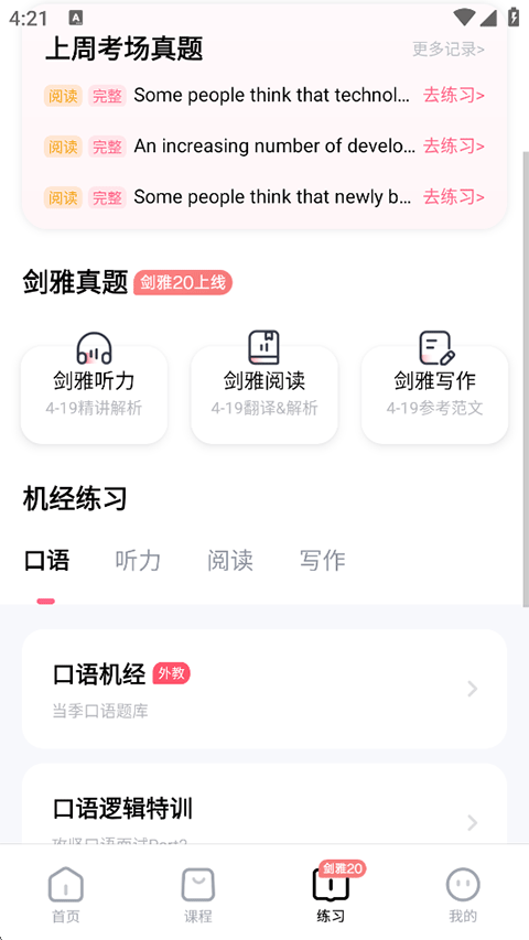 4、下方还有听力、阅读、写作以及口语等模块化专项模块学习;