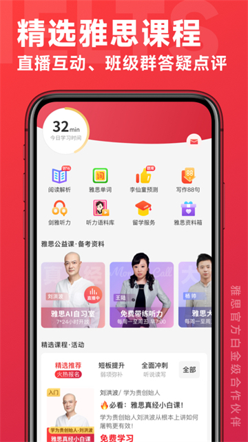 0元公开课-大咖讲堂,雅思听说读写互动答疑。