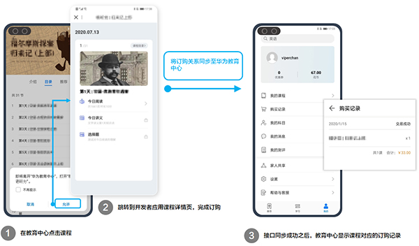 模式二:用户下载并跳转到第三方应用内进行课程购买和学习,此模式仅适用于与华为应用市场进行联运合作的应用。